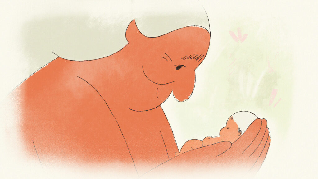 Surrounded by the roots of a withering tree, the soul of an old woman departs from her former body. Unsure of where to go next, she finds guidance in a mythological snake, which patiently leads her towards the afterlife.